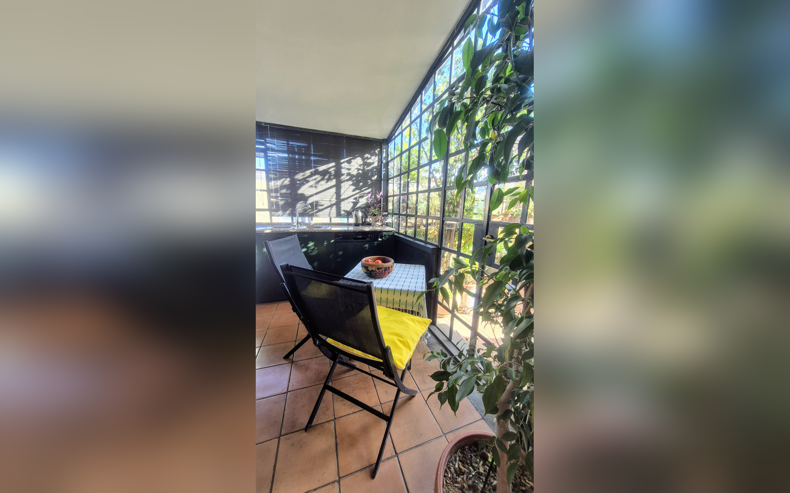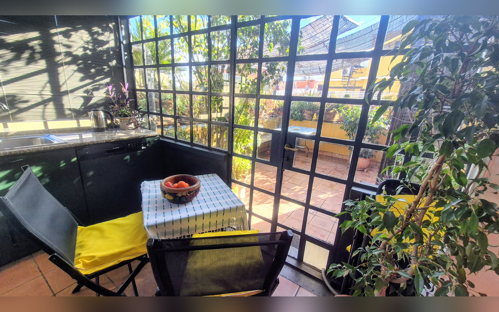 Sì, è uno spazio esclusivo degli ospiti, attrezzato per mangiare e rilassarsi.