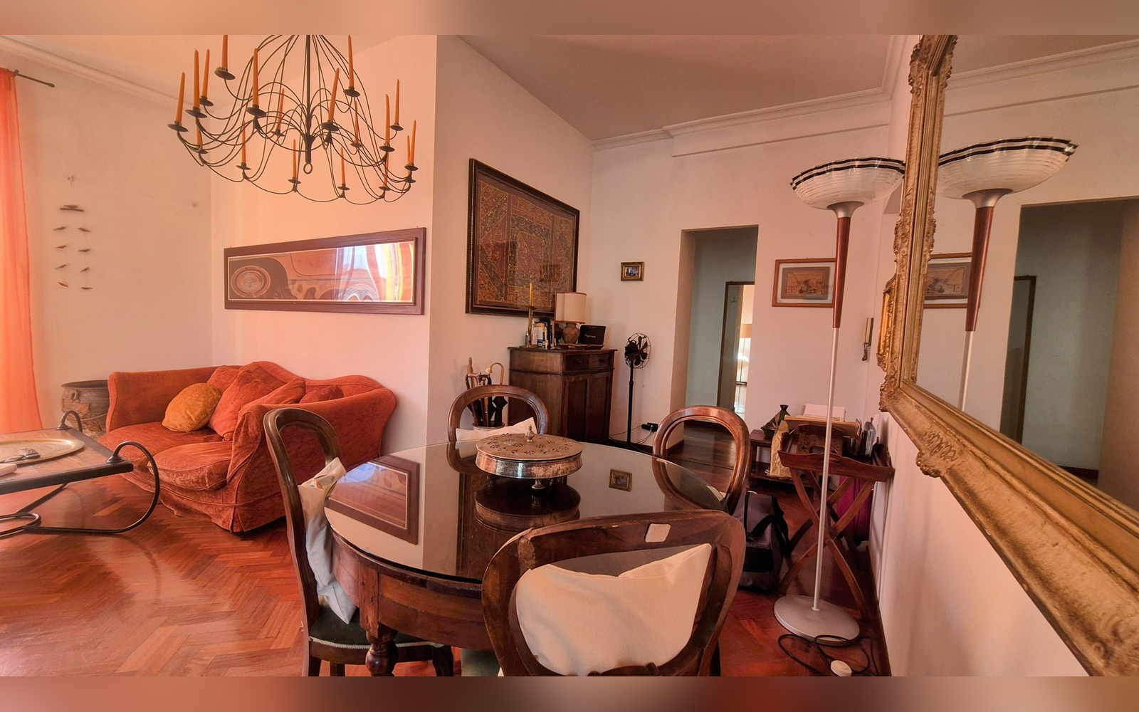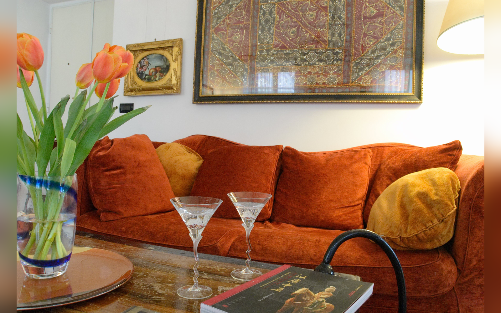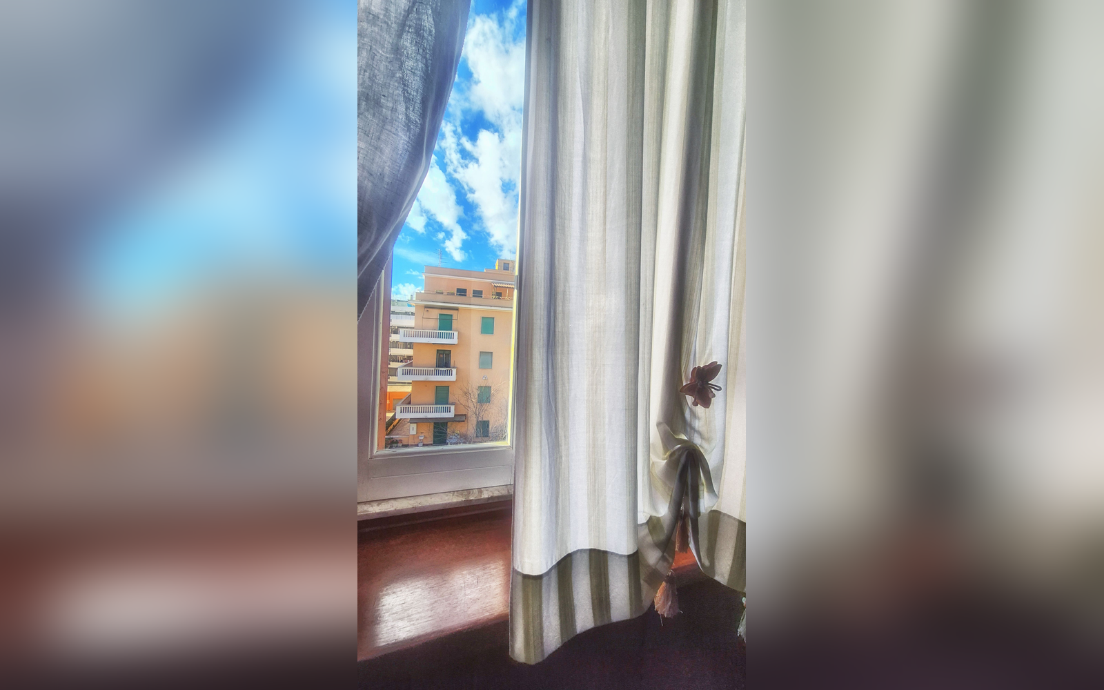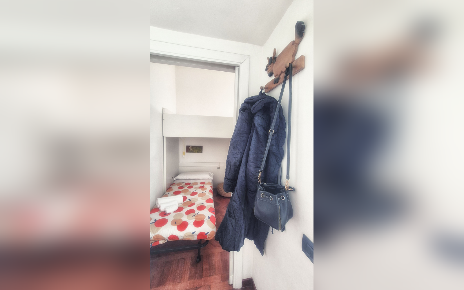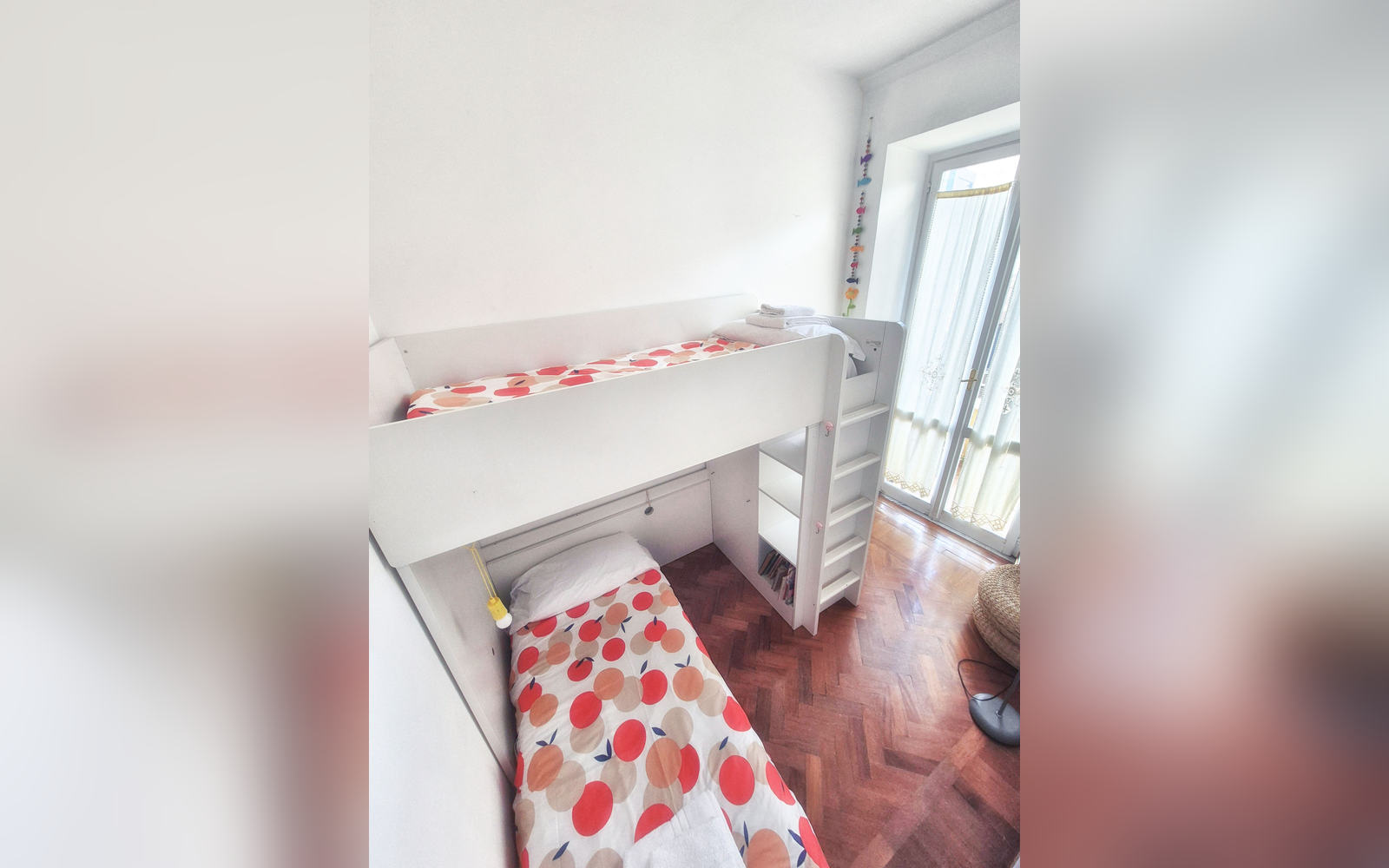 L’appartamento si apre su un soggiorno ampio e luminoso, dotato di divano letto, TV e accesso diretto alla terrazza privata con vista sulla città. La cucina, caratterizzata da eleganti finestre in stile inglese, è completamente attrezzata con forno, lavastoviglie, piano cottura, microonde, bollitore e macchina da caffè: perfetta per chi ama cucinare anche in viaggio. La zona notte comprende una camera matrimoniale large con arredi raffinati e una seconda camera con letto singolo e divano letto, ideale sia per famiglie sia per gruppi di amici. Il bagno, moderno e completo, offre vasca, doccia, asciugacapelli, set cortesia e biancheria di qualità. La casa è completamente climatizzata, insonorizzata, dotata di lavatrice, ferro da stiro, libri e DVD per bambini, oltre a un balcone aggiuntivo con vista sul cortile interno.