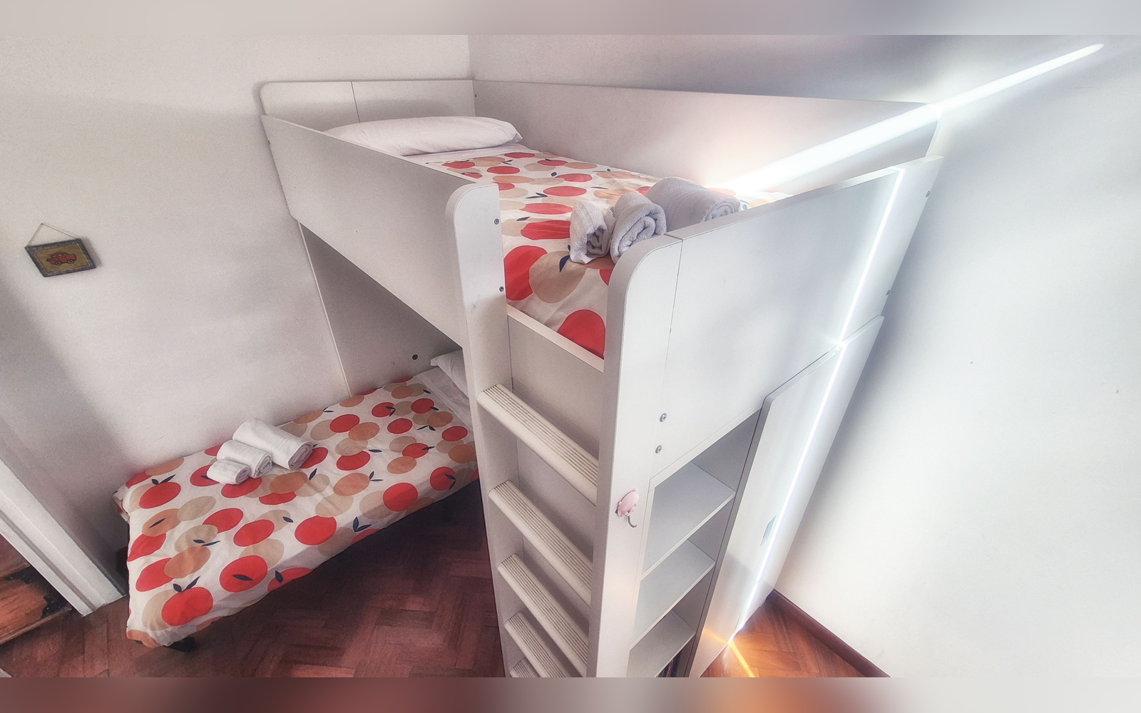 L’appartamento si apre su un soggiorno ampio e luminoso, dotato di divano letto, TV e accesso diretto alla terrazza privata con vista sulla città. La cucina, caratterizzata da eleganti finestre in stile inglese, è completamente attrezzata con forno, lavastoviglie, piano cottura, microonde, bollitore e macchina da caffè: perfetta per chi ama cucinare anche in viaggio. La zona notte comprende una camera matrimoniale large con arredi raffinati e una seconda camera con letto singolo e divano letto, ideale sia per famiglie sia per gruppi di amici. Il bagno, moderno e completo, offre vasca, doccia, asciugacapelli, set cortesia e biancheria di qualità. La casa è completamente climatizzata, insonorizzata, dotata di lavatrice, ferro da stiro, libri e DVD per bambini, oltre a un balcone aggiuntivo con vista sul cortile interno.